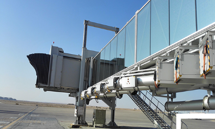 A380登機橋二層U1超高艙門而設計的登機橋,采用了行業(yè)內(nèi)首創(chuàng)的四輪驅(qū)動行走機構(gòu)及其控制系統(tǒng)。旋轉(zhuǎn)伸縮式機橋旋轉(zhuǎn)伸縮式旅客登機橋是對接飛機和機場航站樓(或固定橋)的一種帶有封閉式旅客過道的登機設備。T橋T型旅客登機橋是對接飛機和機場航站樓(或固定橋)的一種帶有T字型封閉式通道的登機設備,通過伸縮通道平移機構(gòu)實現(xiàn)登機橋的平移運動。